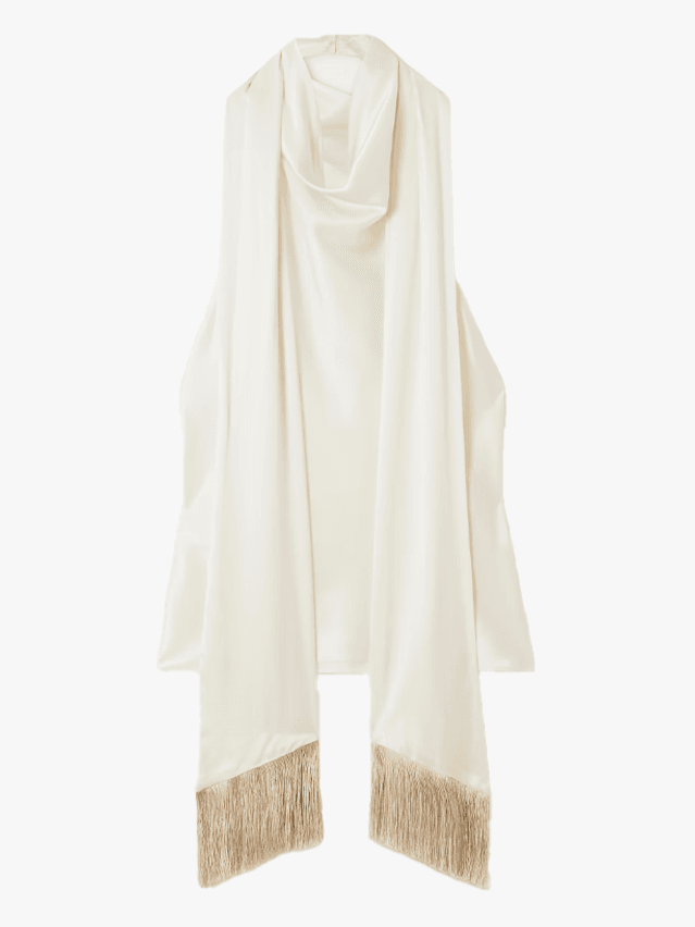 Swishy fringe and tassel accents can bring new meaning to the idea of clothes that move with you. These adornments, seen on the runways in cream and black, iterated on the overarching theme of personality dressing for the season, while still appealing to minimalists who’ve outgrown the ultra simplistic blueprint of quiet luxury. (See: Sportmax, Alaïa and Ferragamo.)