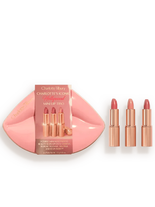 Housed in a Lulu Guinness-esque lip-shaped tin is a trio of sultry shades from Charlotte Tilbury’s pout-perfecting lipstick collection. The tonal pink colourways were selected for their universal appeal. They come in mini form but are still encased in the brand's signature luxe gold exterior.