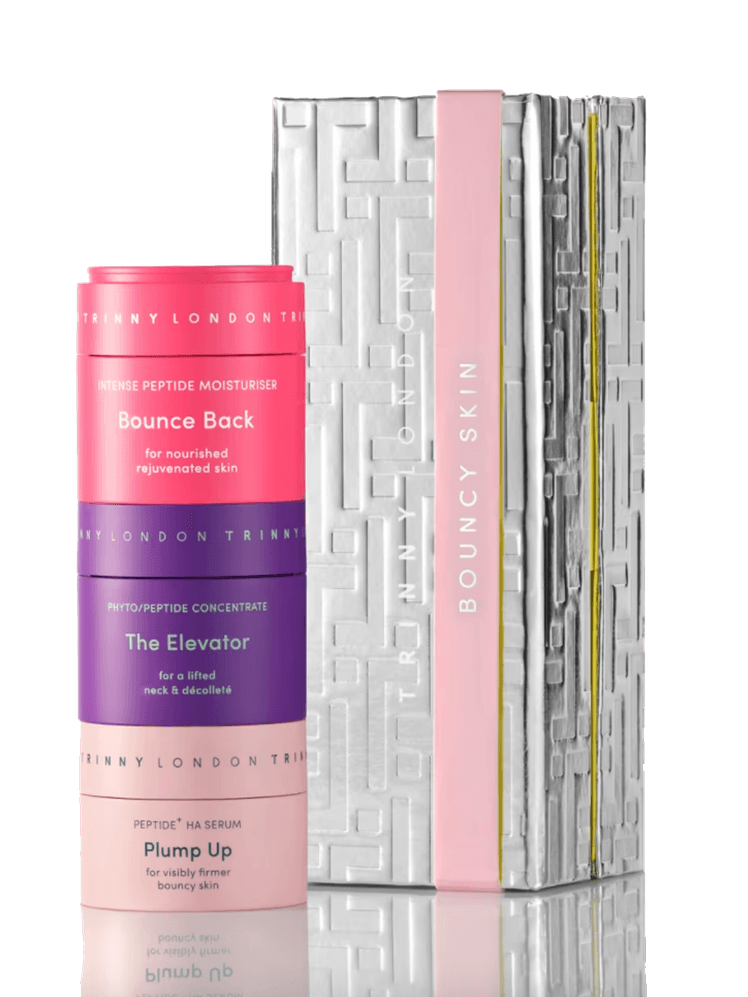 Stackable skincare but supercharged is what defines this stellar Trinny London selection, packed within a sleek travel case. It contains the powerhouse trio of the plumping Bounce Back intense peptide moisturiser, firming Plump Up peptide and hyaluronic acid serum and lifting The Elevator neck and décolleté concentrate – and it’s worth a combined total of £77.